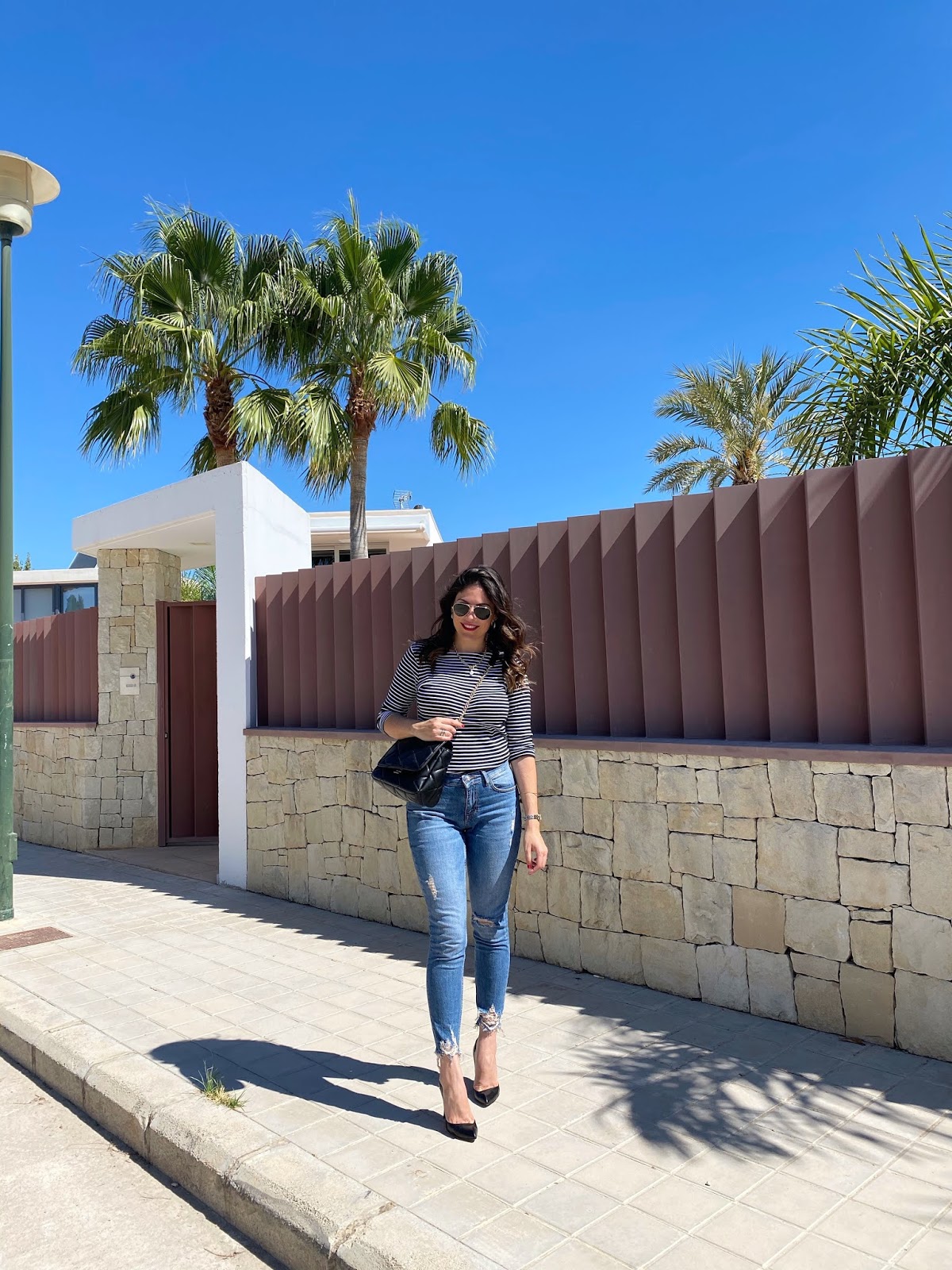Combinados con cami a rayas y zapatos y bolso negro me parece ideal!
